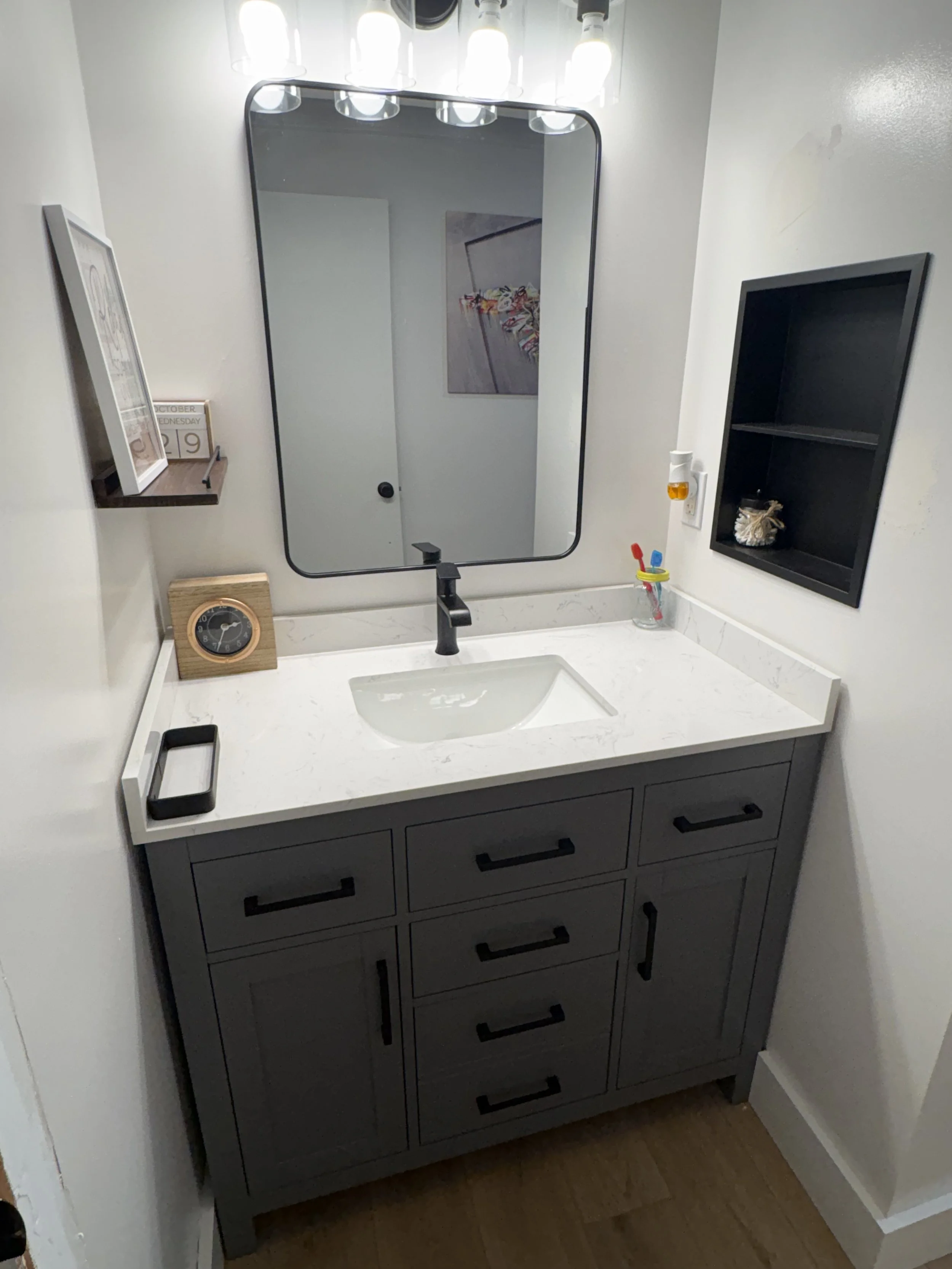 From concept to completion… kitchen renovation - before kitchen renovation - after bathroom update - before Bathroom Update - after Hall Bath - before HALL bath - after guest bath update - before guest bathroom update - after toilet / accent wall - before hall toilet / accent wall - after Previous Handyman jobs/services Guard rail replacement Ceiling fan replacement Flooring Installation Prehung interior door replacement Drywall repair, paint. new vanity, mirror, medicine cabinet install brush clean up and removal door refinishing + hardware / shiplap halfwall MANY MORE CUSTOMER JOB IMAGES TO COME! CALL TO START YOUR PROJECT